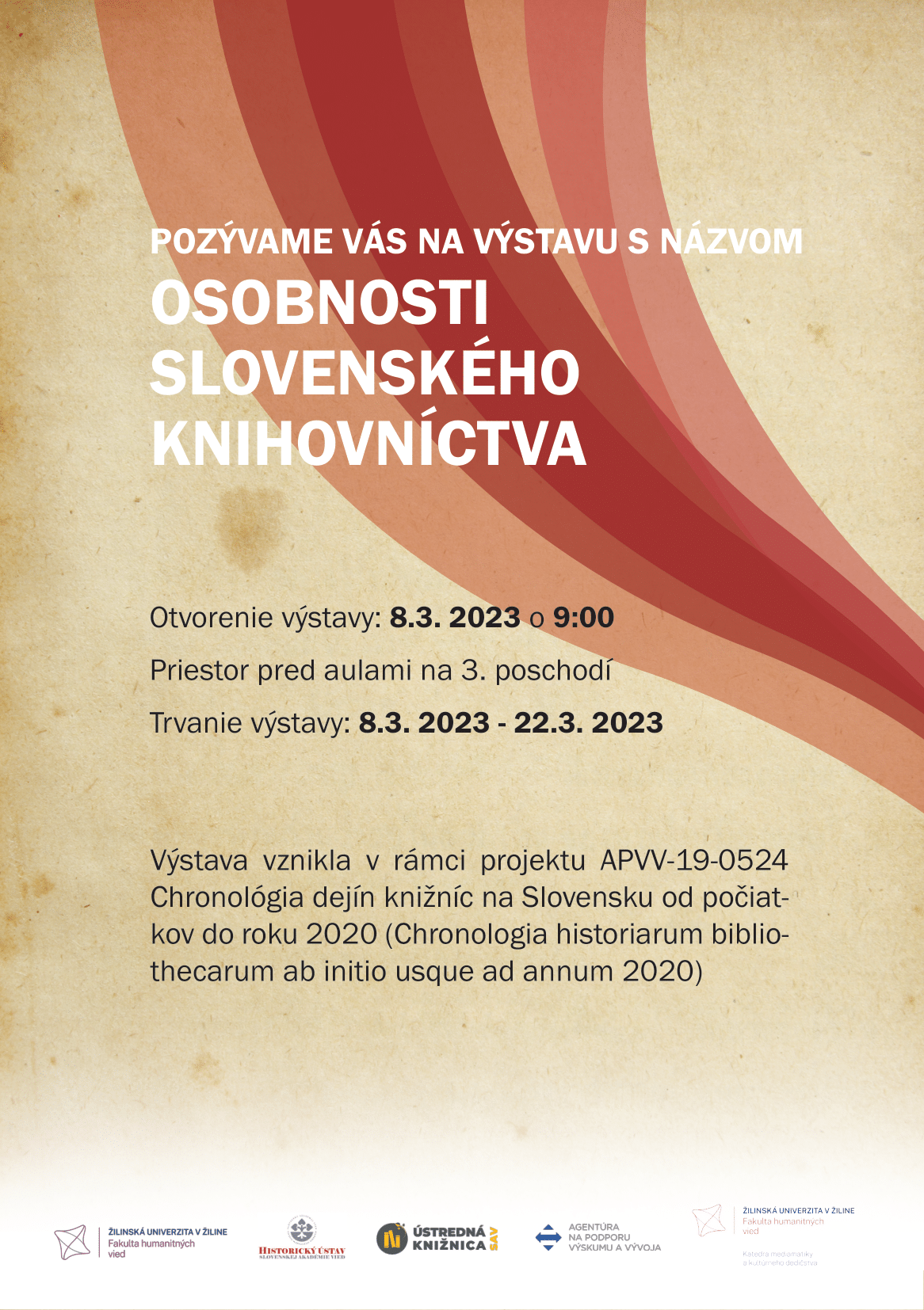 Touto cestou si Vás dovoľujeme pozvať na otvorenie výstavy „Osobnosti slovenského knihovníctva“, ktorá sa bude konať 8.3.2023 o 9:00 pred aulami na 3. poshodí (budova rektorátu).